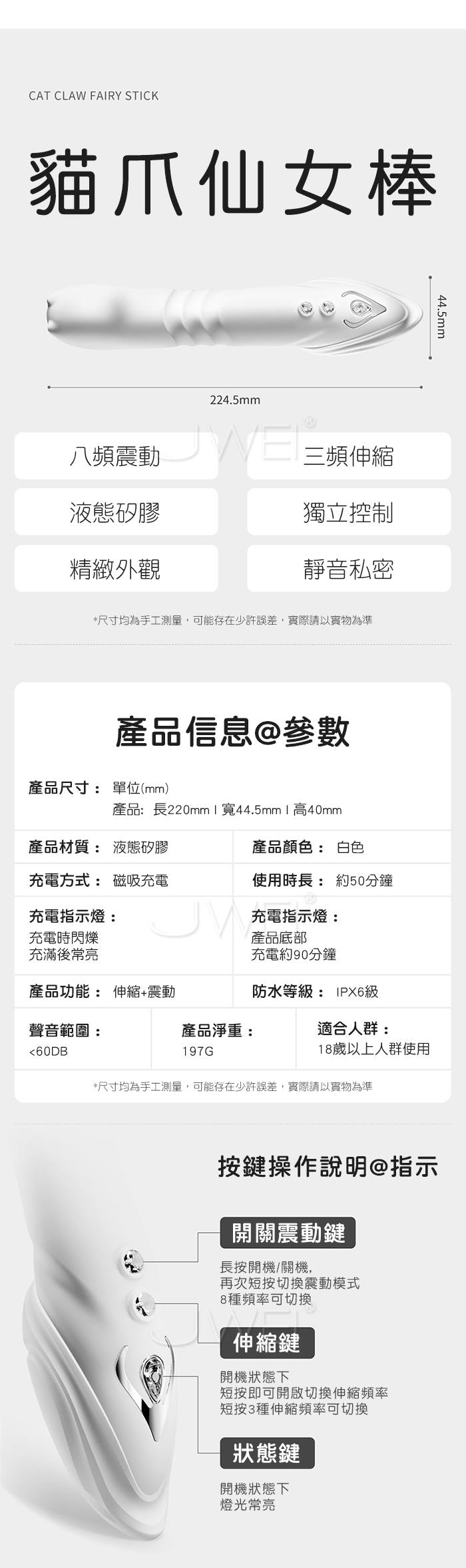 ►您現在的位置:首頁>貓爪仙女.3段伸縮+8檔強震 M型頂攻G點剮蹭加溫按摩棒【旗艦版】