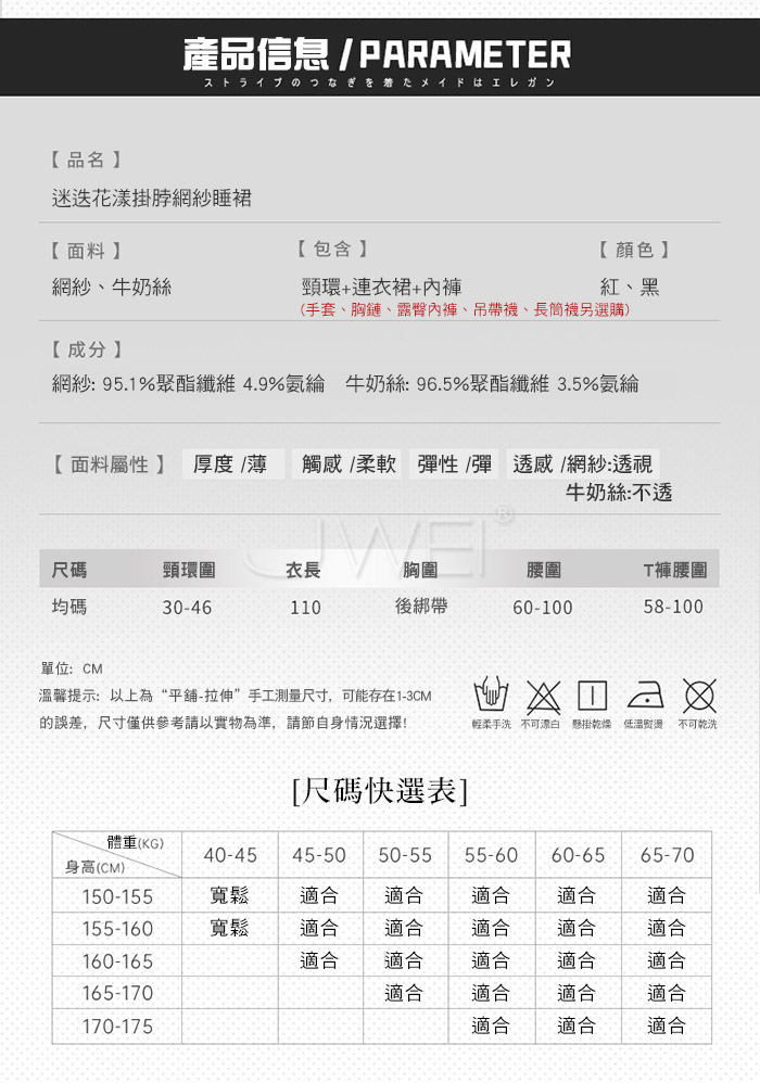 2.基於保障消費者個人衛生,情趣衣物類恕不接受退換貨,如為商品本身暇疵,接受三日內換貨,請勿試穿。