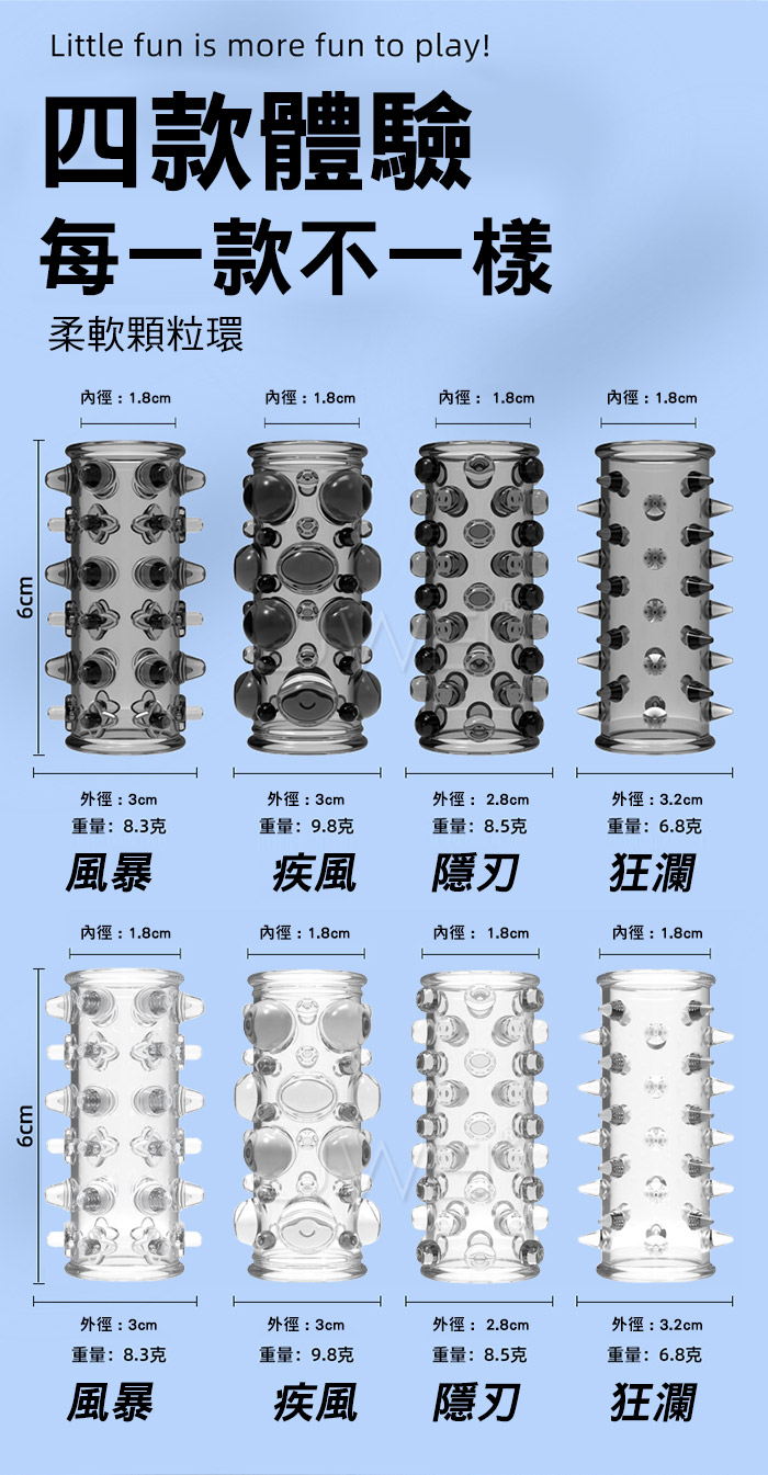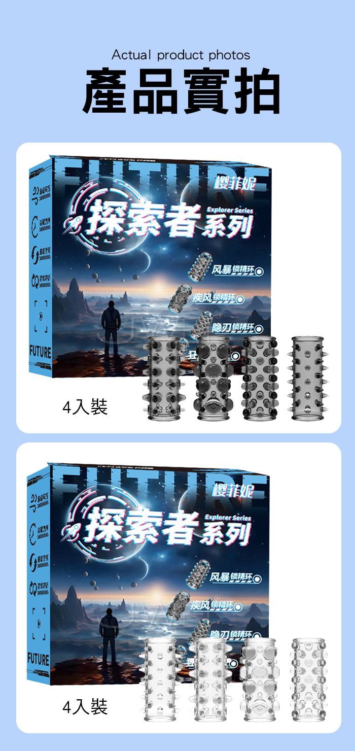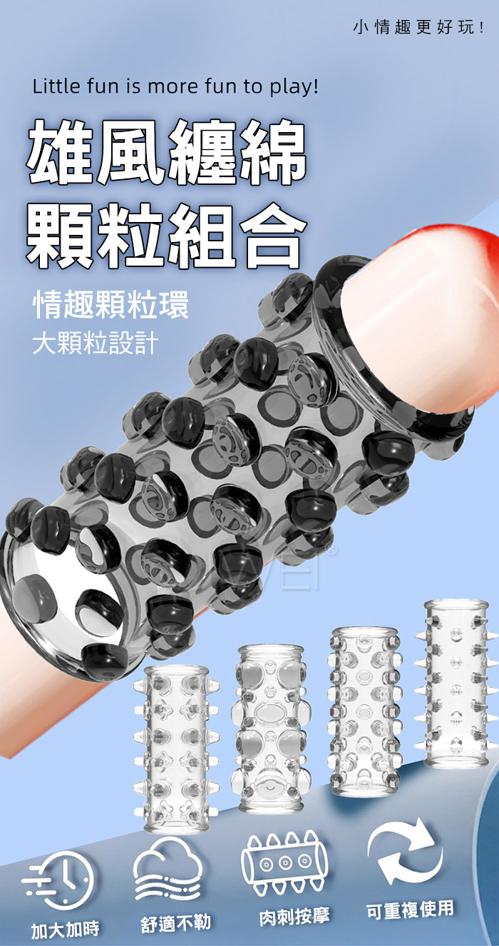 探索者.大顆粒刺激摩擦快感鎖精延時狼牙套-4入裝【透明】