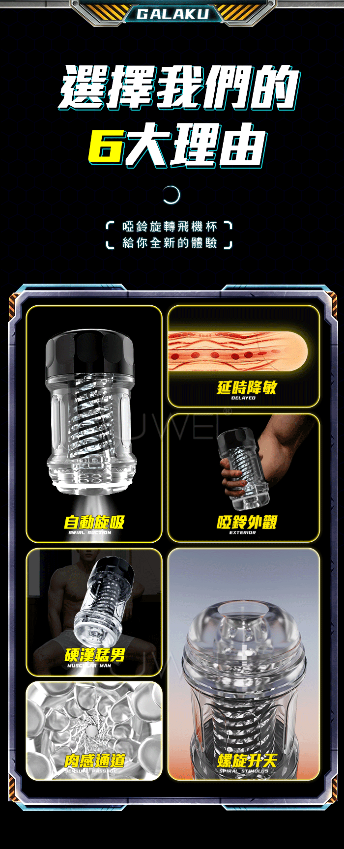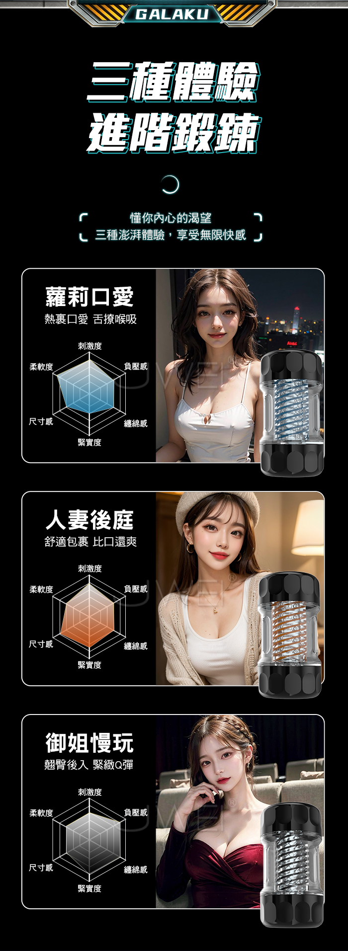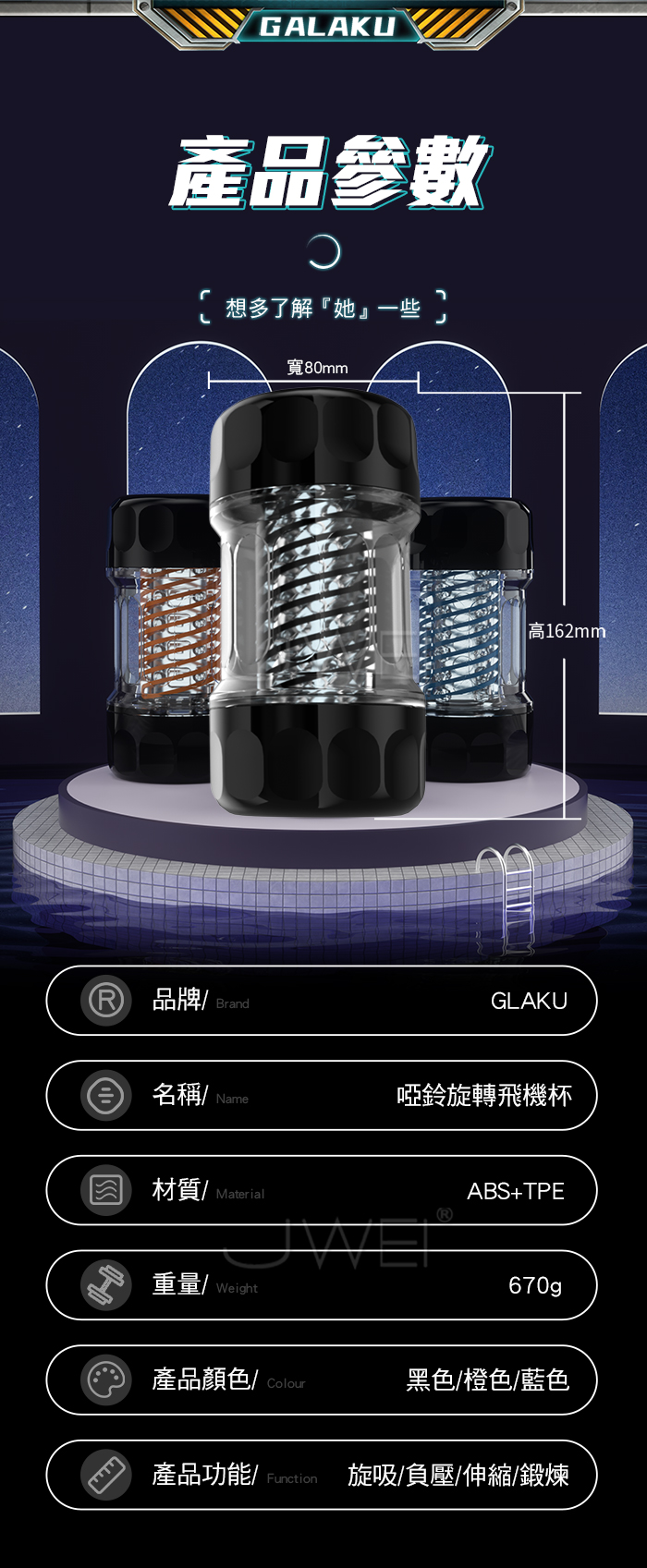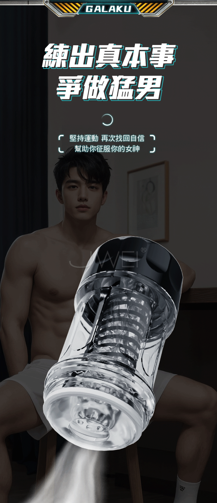 GALAKU.啞鈴旋吸杯 誘惑御姐 肉感旋轉手動負壓吮吸降敏飛機杯-口愛款【黑色】