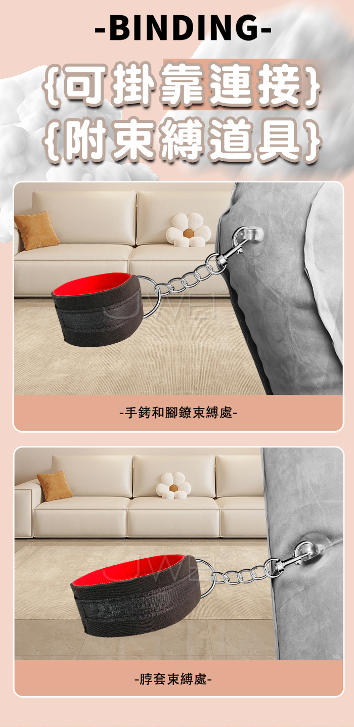 讓愛漂浮在雲端,SEX 充氣情趣床墊 輕柔而充滿情趣,不估空間,增添情趣 彈力十足回彈迅速,格柵紋理 有效支撐身體背部 ■尺寸:大小詳如圖片標示 ■材質:PVC植絨 ■注意: SM道具請以安全、清醒、非強迫為使用原則, 使用前請先徵得對方的同意