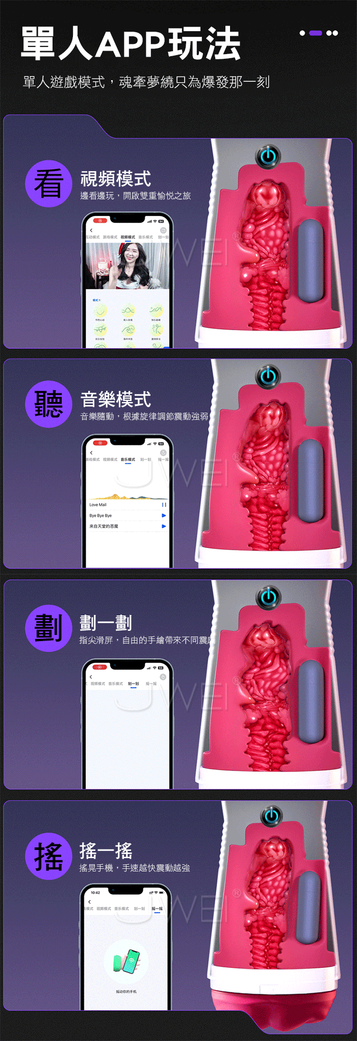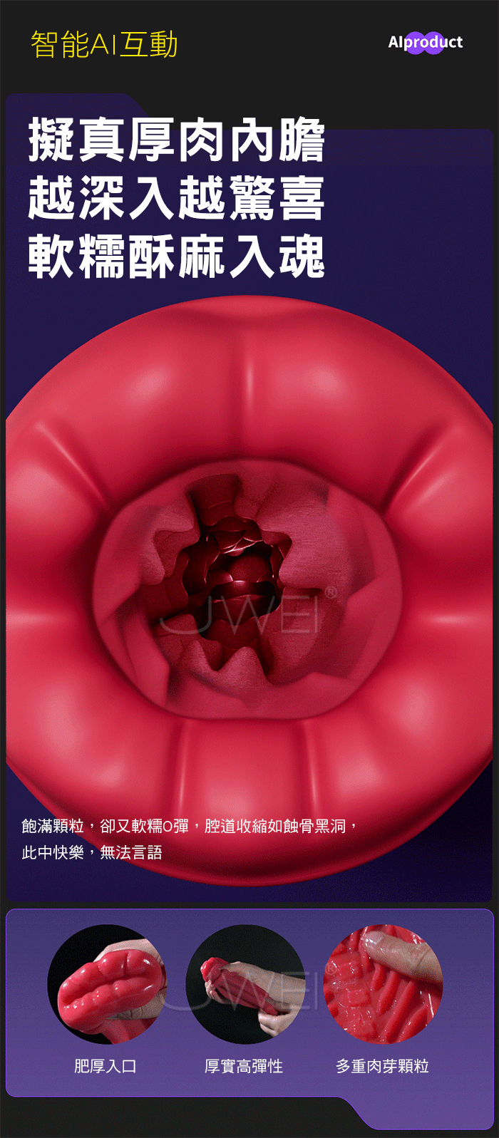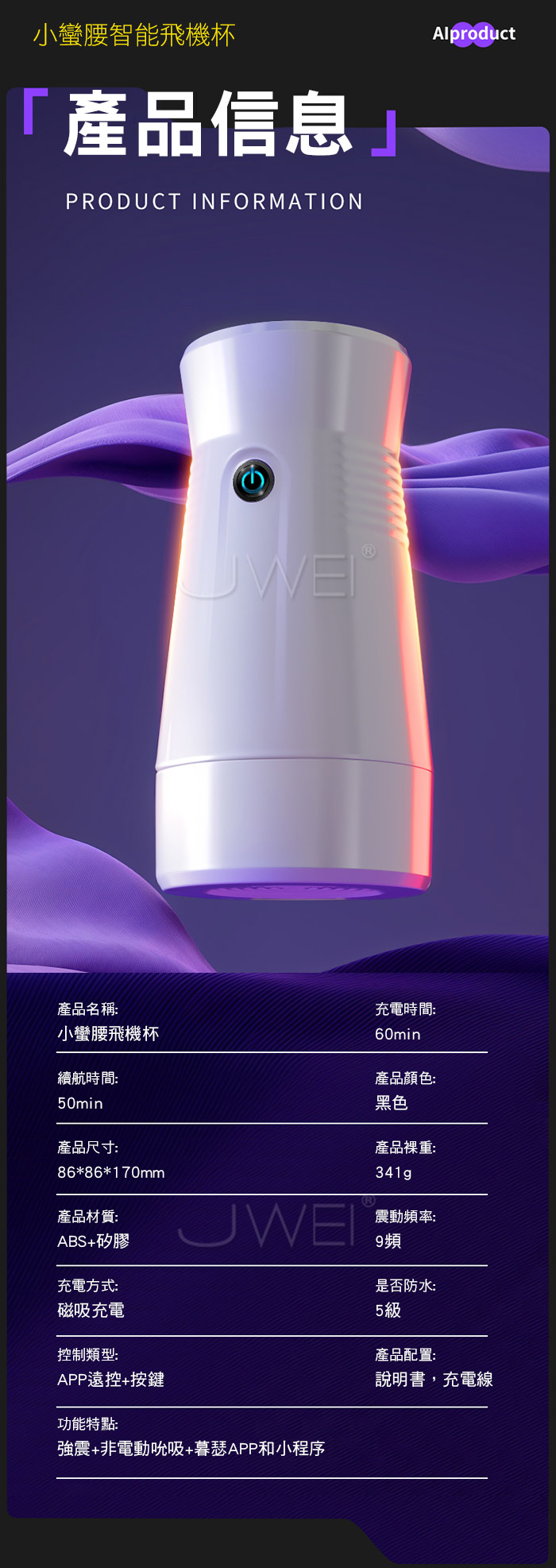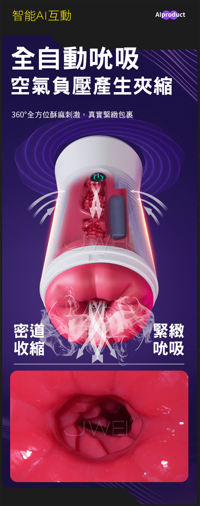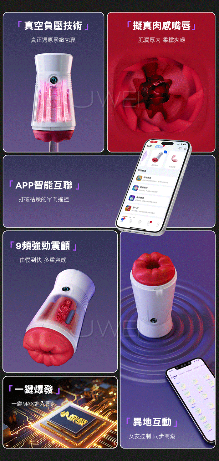 真空夾震,360度環繞舒爽,空氣負壓產生夾縮,真實緊緻包裹 擬真厚肉內膽,越深入越驚喜,軟糯酥麻入魂,此中快樂 無法言語~ 脉衝按摩,9檔震動調節,感受肉感蜜道從淺到深的多重快感 產品規格 ■尺寸:大小詳如圖片標示 ■材質:TPE+ABS ■特點:9頻震動、APP智控