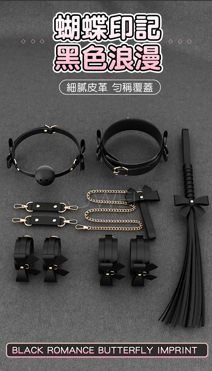| SM束縛套裝. 黑色情趣 蝴蝶結皮革捆綁束縛7件組套裝
