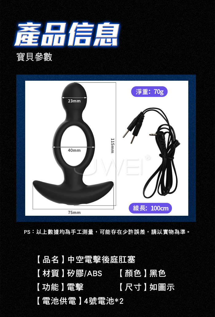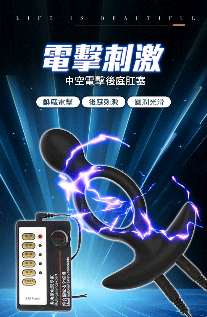 Electric shock脈衝電擊.10級強度微電流電擊刺激 牢固貼合中空矽膠肛塞【中文主機+電擊肛塞】