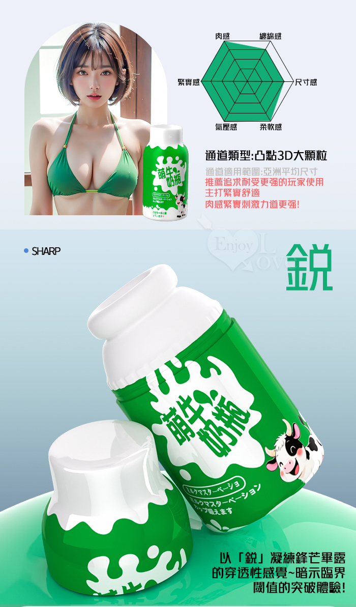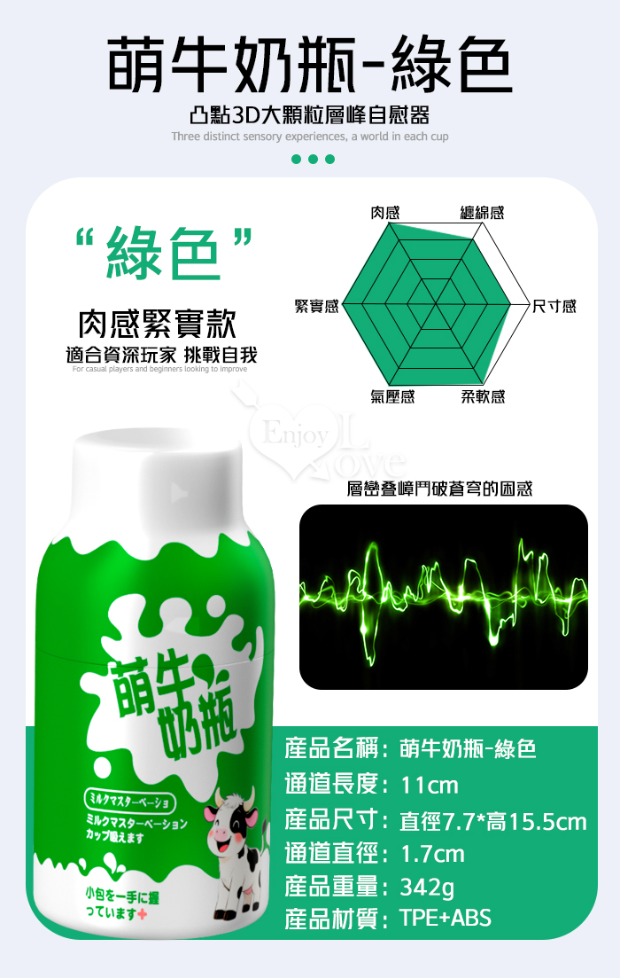 | 萌牛奶瓶 ‧ 凸點3D大顆粒層峰自慰器﹝高階肉感緊實款-綠色﹞