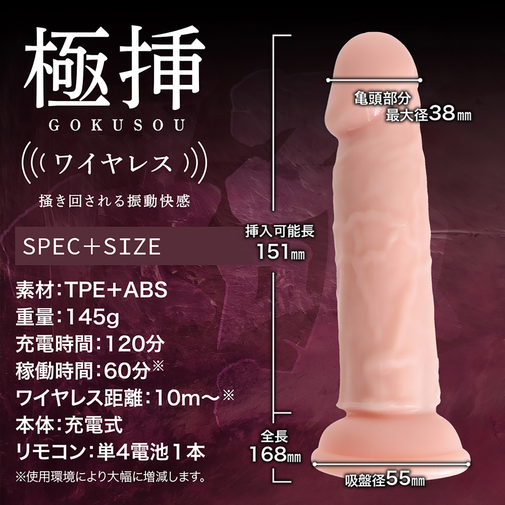 商品尺寸:全長16.8cm、可插入長15.1cm、最大直徑3.8cm、重量145g