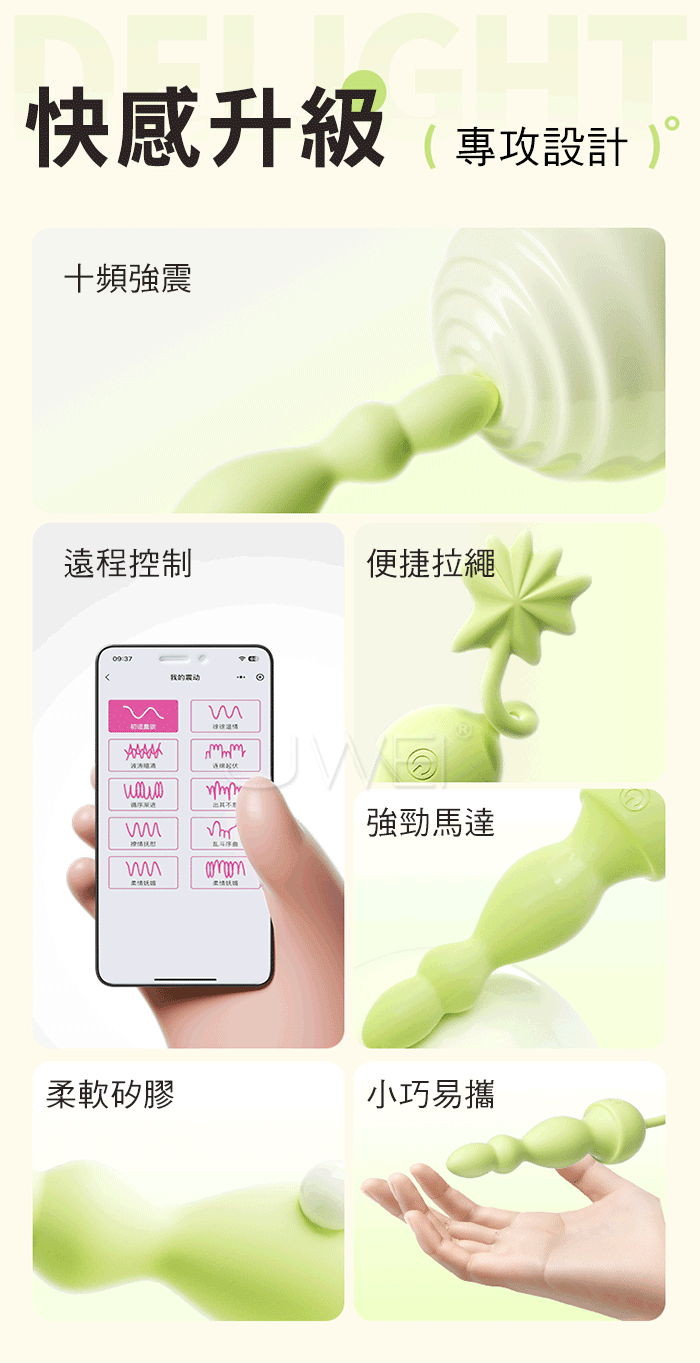 | 幸運葉 萌芽.10頻酥麻強震 軟糯絲滑 APP遠控拉繩後庭拉珠棒