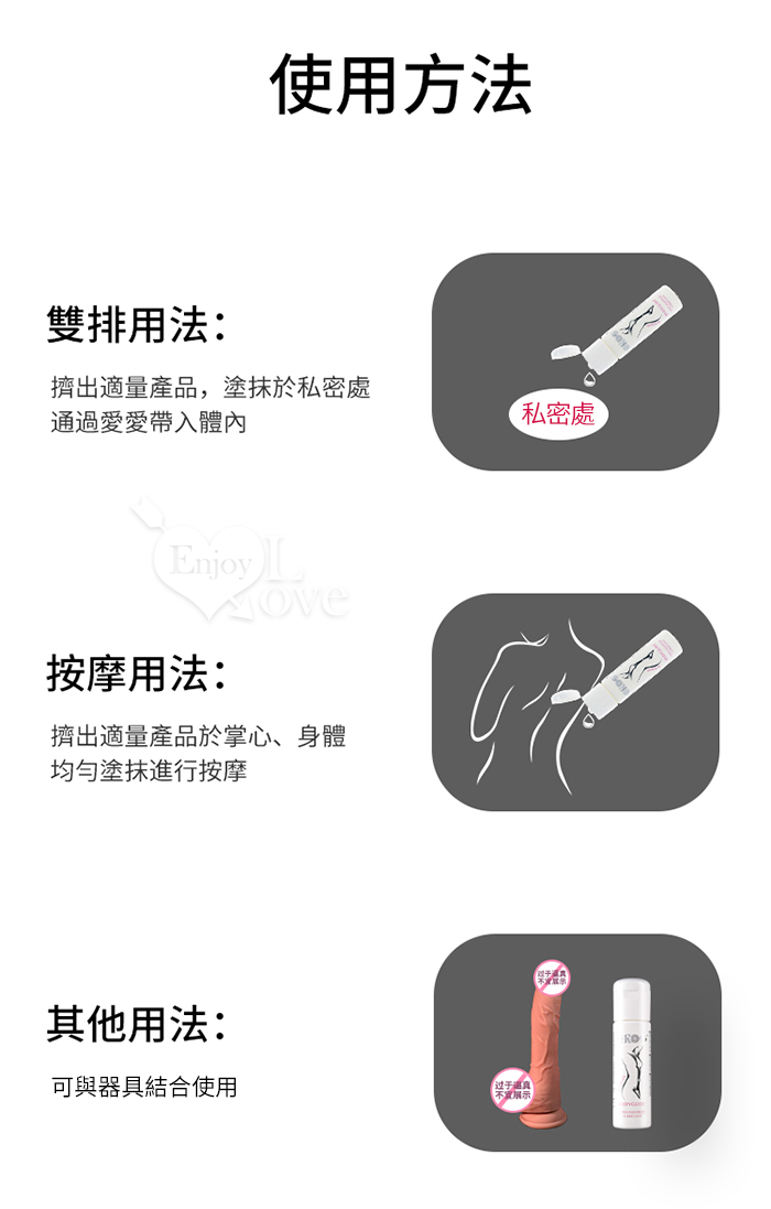 按需取適量 EROS 女性身體潤滑液,塗抹於需補充滋潤的身體部位,使用頻率可根據自身需求調整。