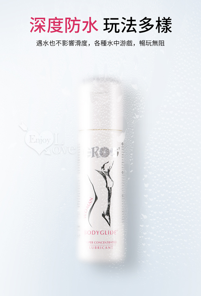 • EROS 女性超濃縮身體潤滑液是一款矽基潤滑劑,專為幹性及敏感性肌膚女性的需求定制。