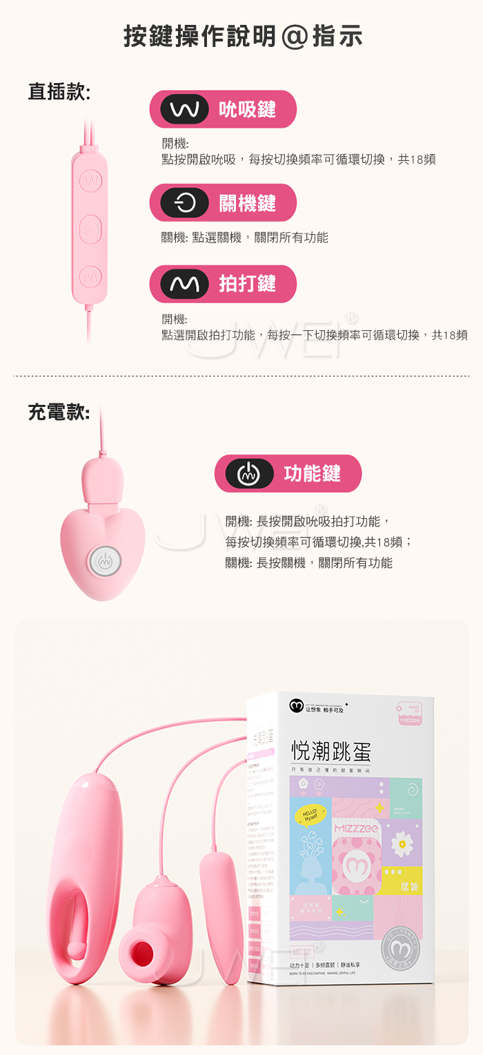| 謎姬 MizzZee.悅潮.18x18頻脈衝吮吸 摳震拍打 內外共潮情趣跳蛋【充電款-雙跳蛋】