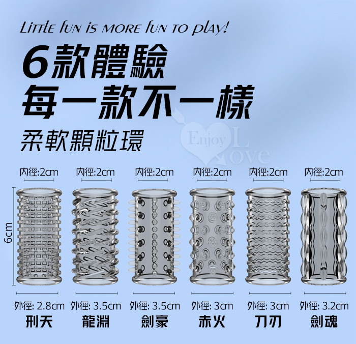 | 武魂系列.劍魂六組合套~顆粒入珠肉刺環繞鎖精延時陰莖加強環~成人性趣輔助用品-6款體驗裝﹝透明黑﹞