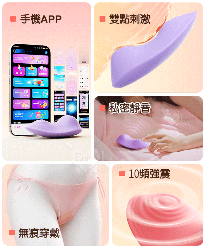 | ROSELEX 小蕾逗 ‧ 10頻強震隱形穿戴按摩器﹝親膚矽膠/內褲隨搭貼身/兩種操控模式﹞可手機APP遙控 - 紫
