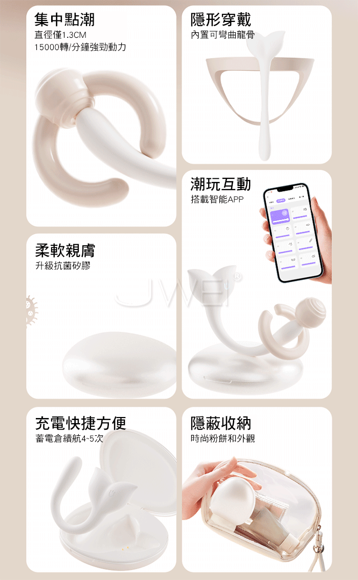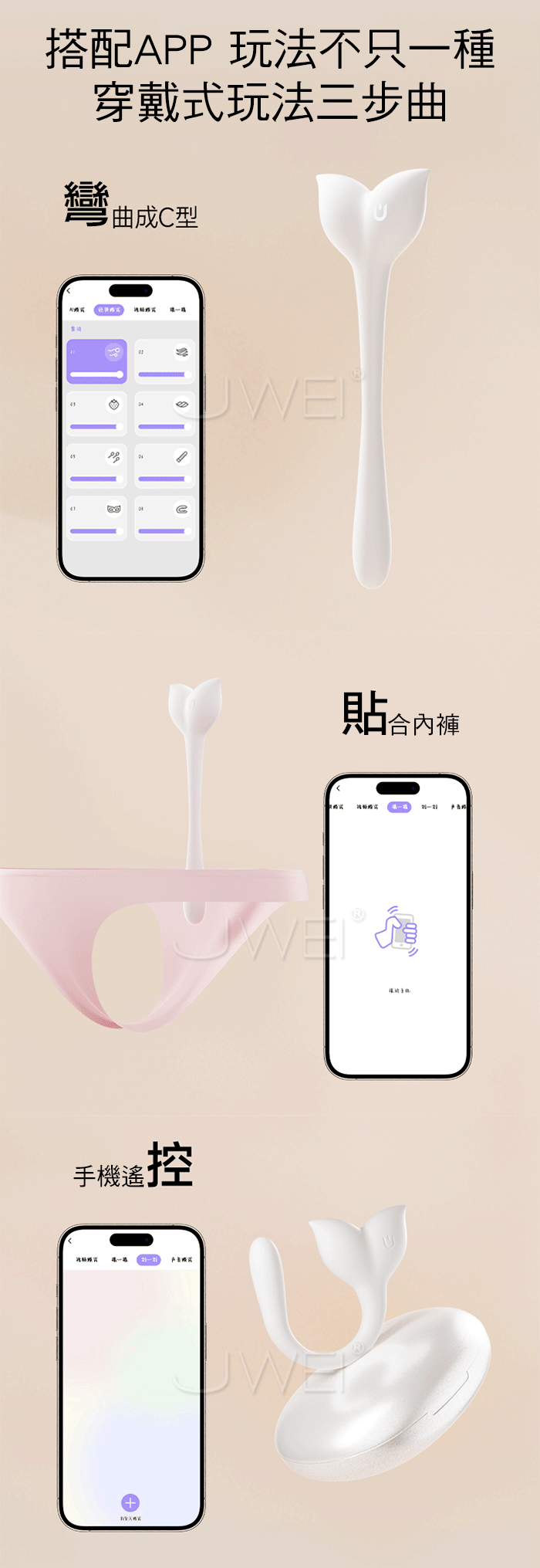 小鯨尾穿戴式的G點探索筆,可彎穿戴·智能遙控·隱形靜音 1.3cm直徑設計 輕鬆入體,內置可彎曲龍骨,精準點潮 8檔調頻 觸電般得綿密震感,15000/轉,更高轉速快感急速猛 產品規格 ■尺寸:大小詳如圖片標示 ■材質:矽膠+ABS ■功能:8頻震動、APP智控