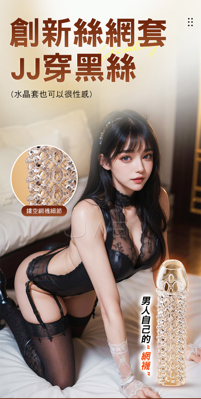 | 絲網.鏤空網襪凸起顆粒摩擦 加粗開口水晶老二套【透明】