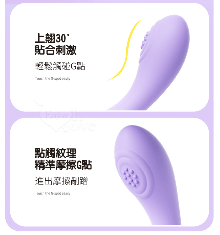 ►您現在的位置:首頁>LILO 來樂.Love 觸G棒 ‧ 10頻震動人體工學感官刺激G點按摩棒﹝淺紫﹞充電款