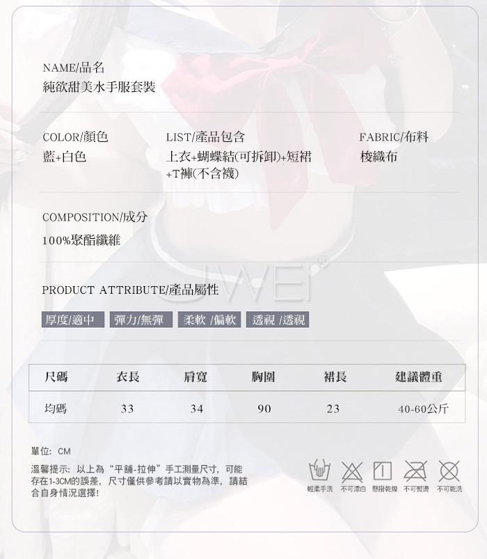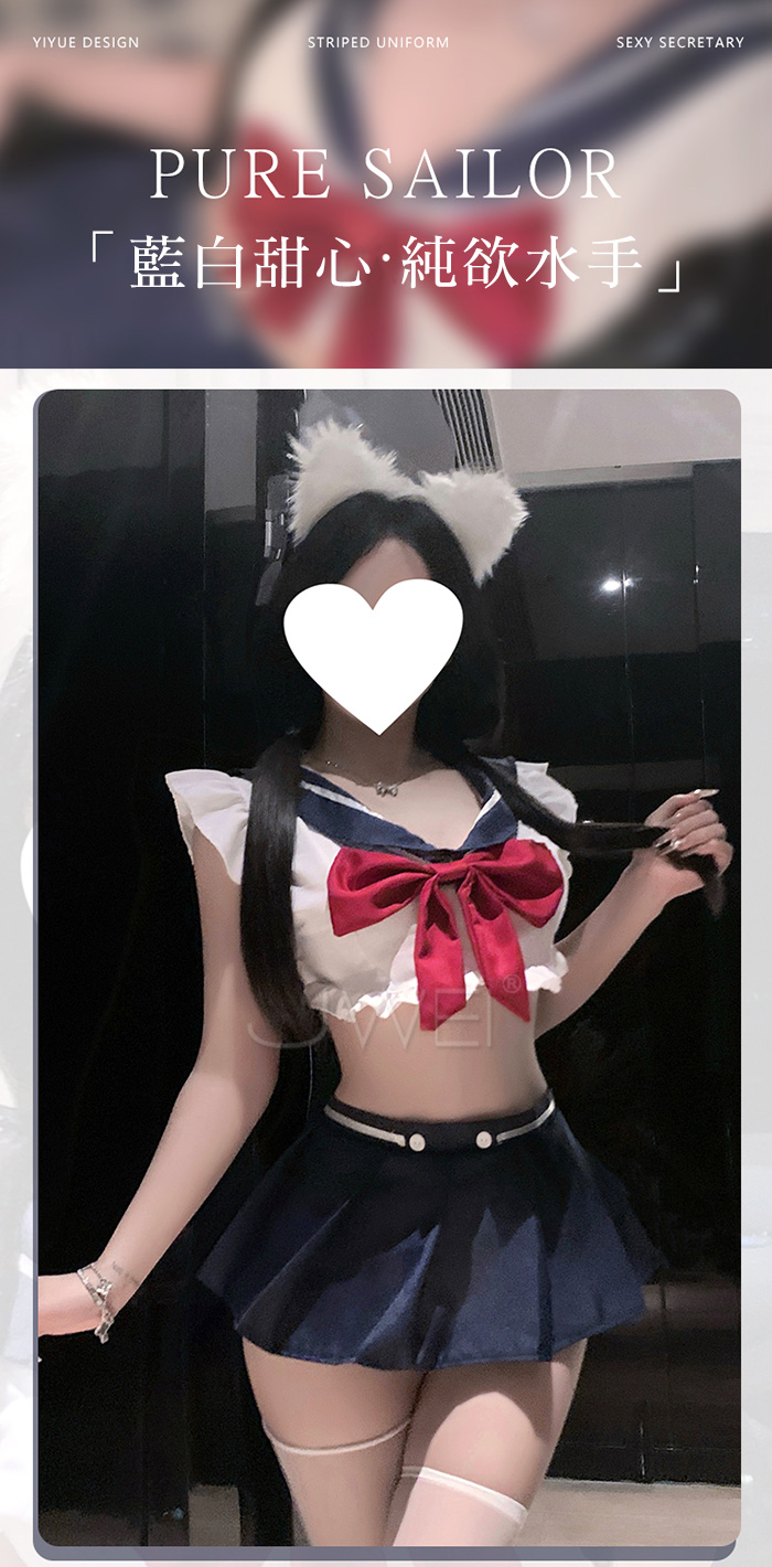 ►您現在的位置:首頁>藍白甜心.深V露胸百褶裙擺純欲甜美水手服套裝【上衣+蝴蝶結(可拆)+短裙+T褲】