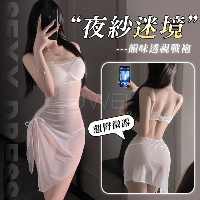 | 曼妙身姿.薄紗透肉可解露胸透視三點式套裝