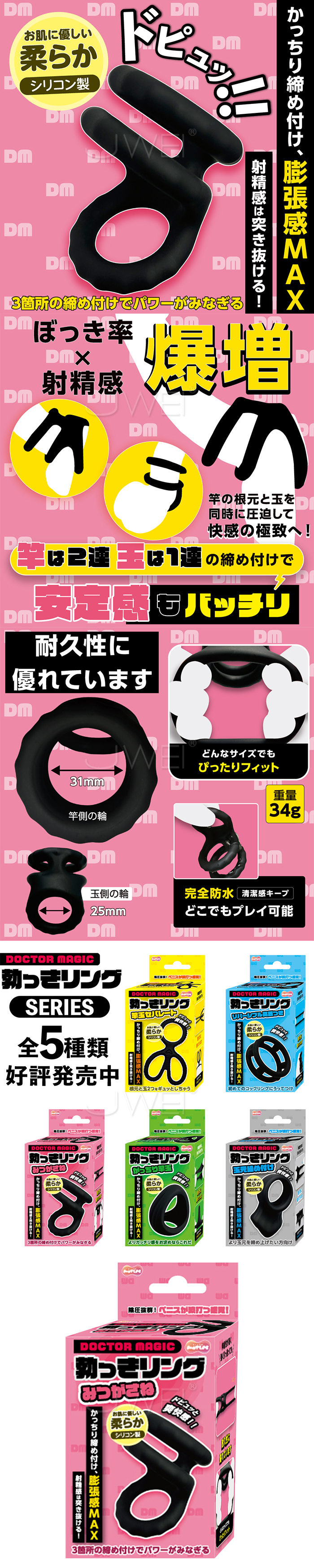 日本原裝進口MOTLAB.勃っきリング 三環同時に圧迫 持続力+膨脹感UP!鎖精陰莖環