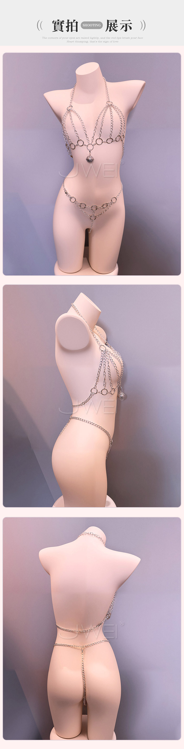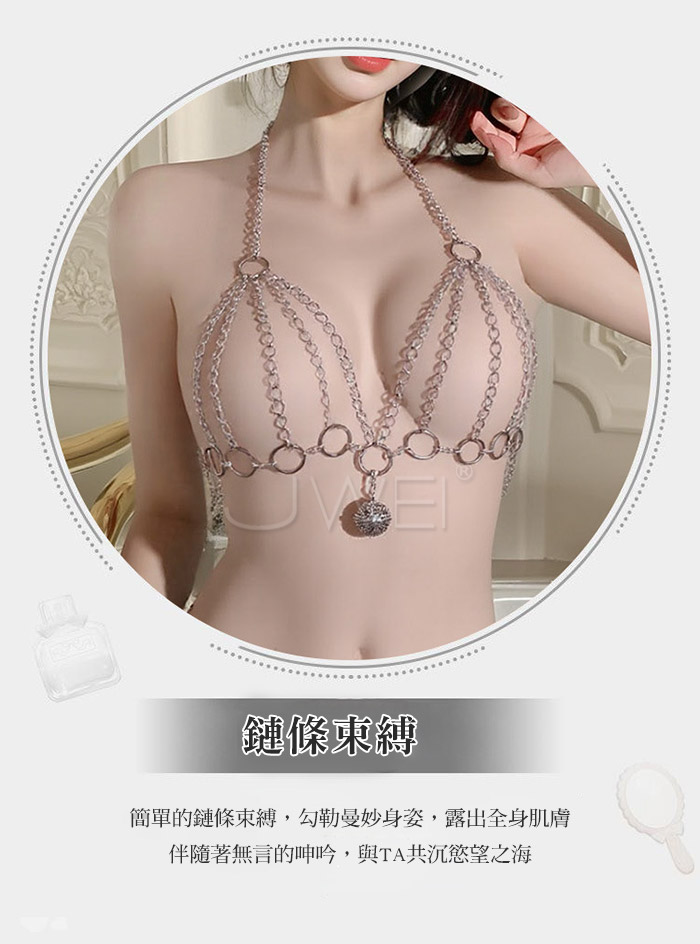 鏈鎖激愛.火辣鏈條鎖胸束縛鈴襠三點一體式金屬鏈衣