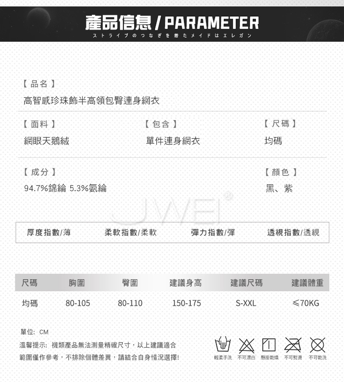 2.基於保障消費者個人衛生,情趣衣物類恕不接受退換貨,如為商品本身暇疵,接受三日內換貨,請勿試穿。