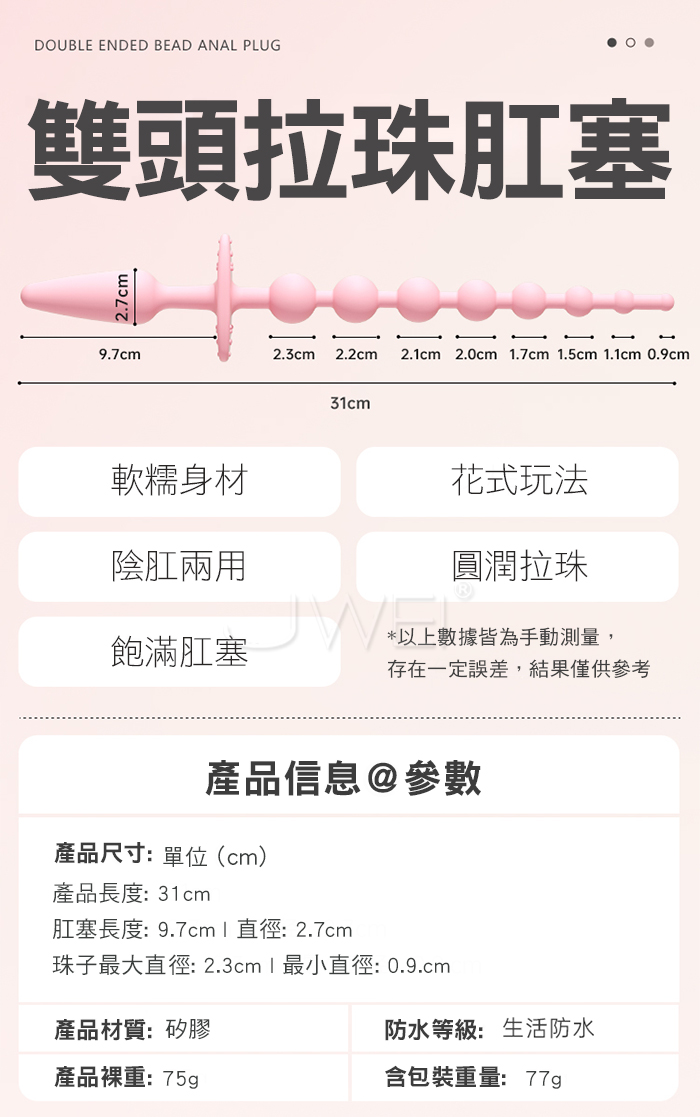 謎姬 MizzZee.雙頭拉珠.雙頭體驗圓潤八連還拉珠矽膠肛塞