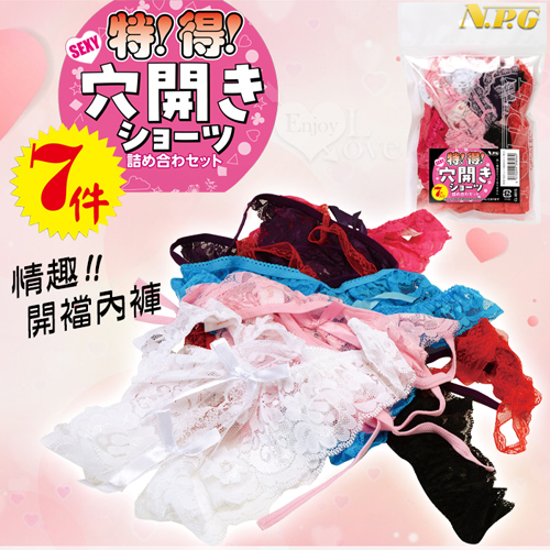 日本NPG.特價!超值!穴開きショーツ 7件套情趣開襠式內褲﹝不重覆/自用‧派對‧贈品兩相宜﹞