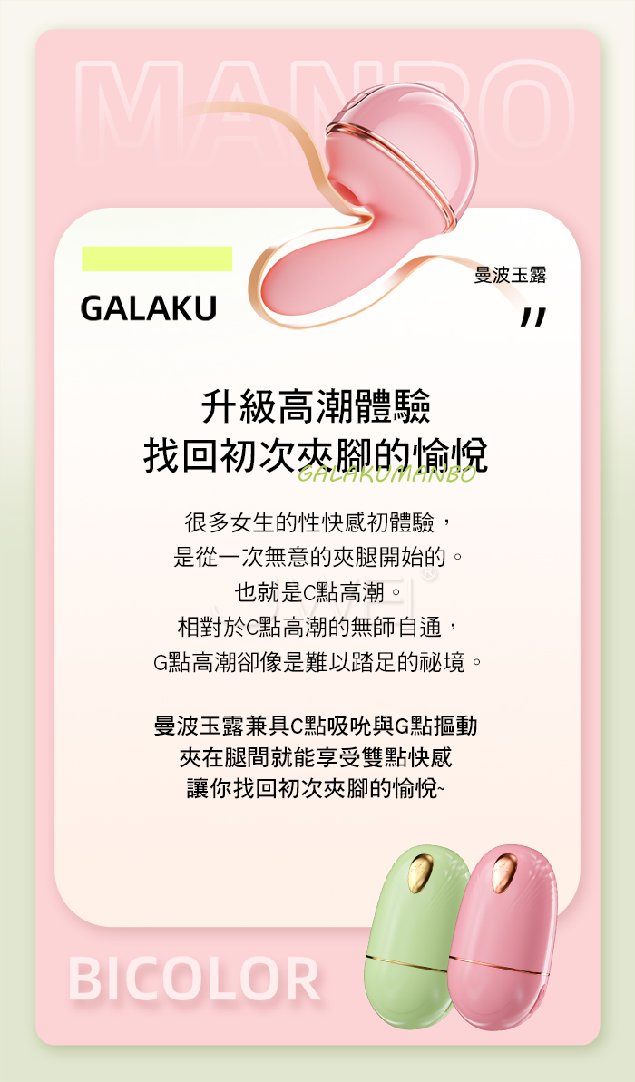 雙潮喚起,夾住腿就能嗨,曼波玉露兼具C點吸吮與G點摳動