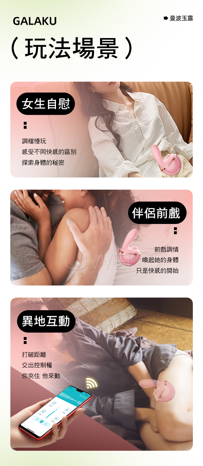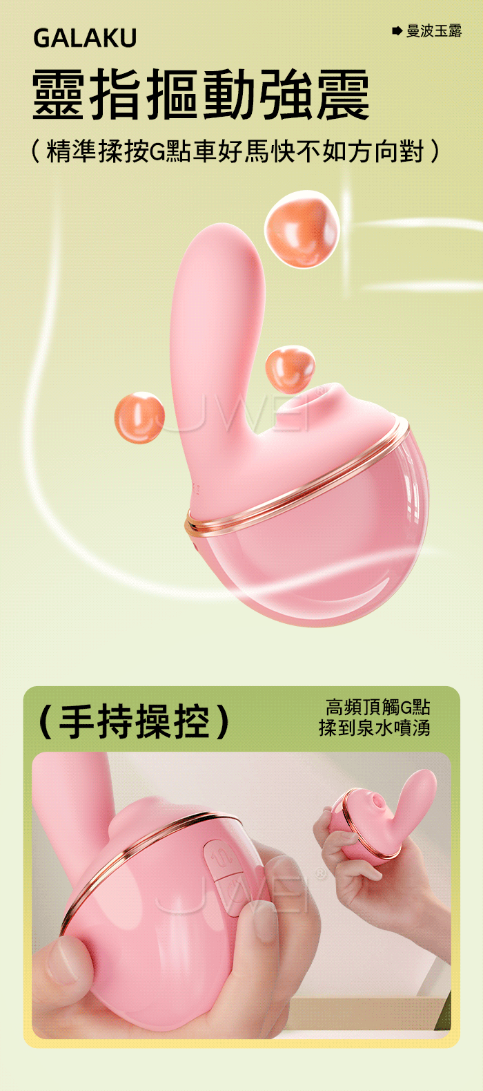 ►您現在的位置:首頁>GALAKU.曼波玉露 10頻靈指摳動+大口吮吸 雙潮喚起智能遠控變頻跳蛋【綠色】