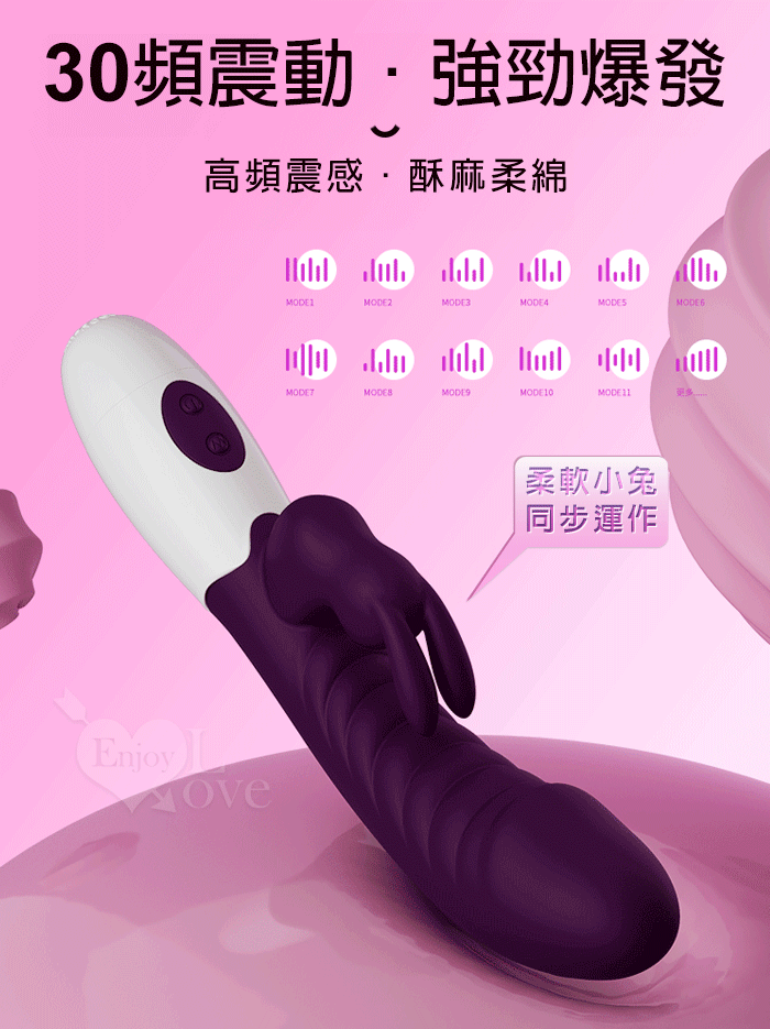| PRETTY LOVE 派蒂菈 ‧ 頑皮兔 內外雙重30頻雙頭同震按摩棒-深紫