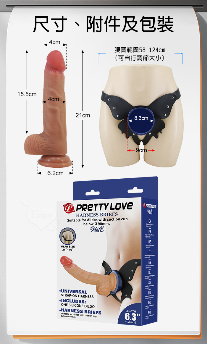 | PRETTY LOVE 派蒂菈 ‧ 威爾斯 Nells 矽膠逼真勇猛老二棒+強力吸附穿戴褲﹝可拆分通用﹞