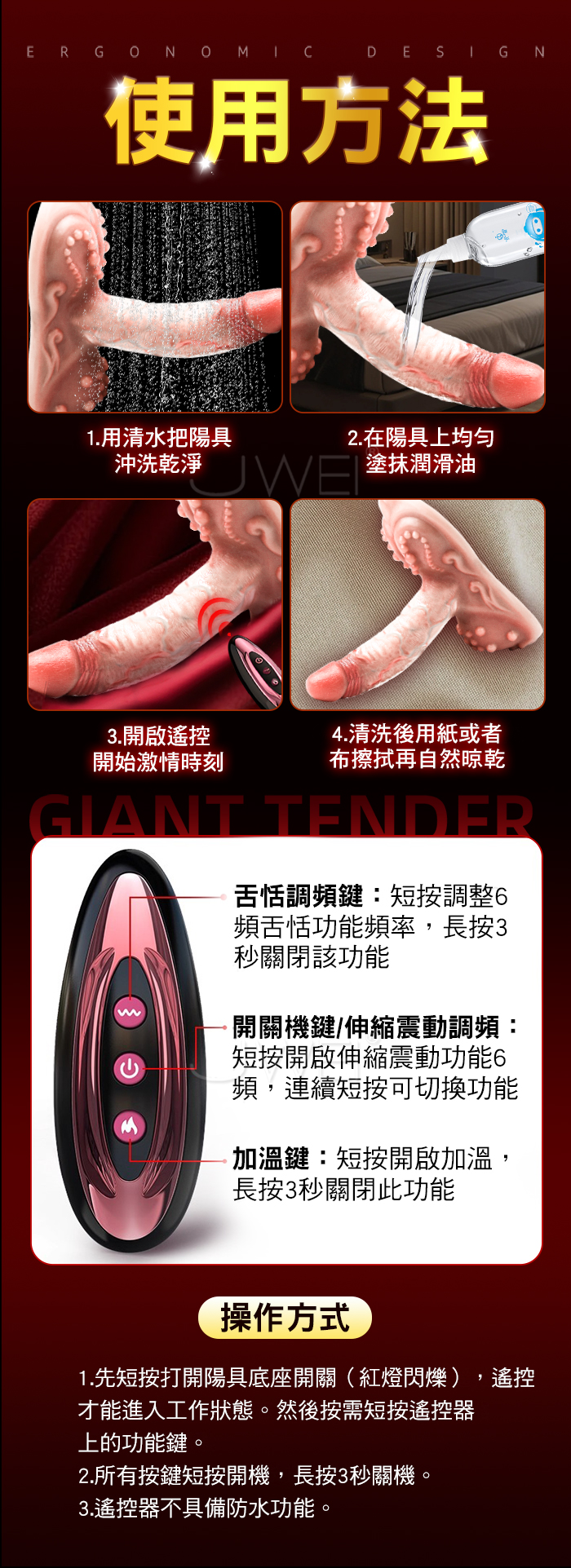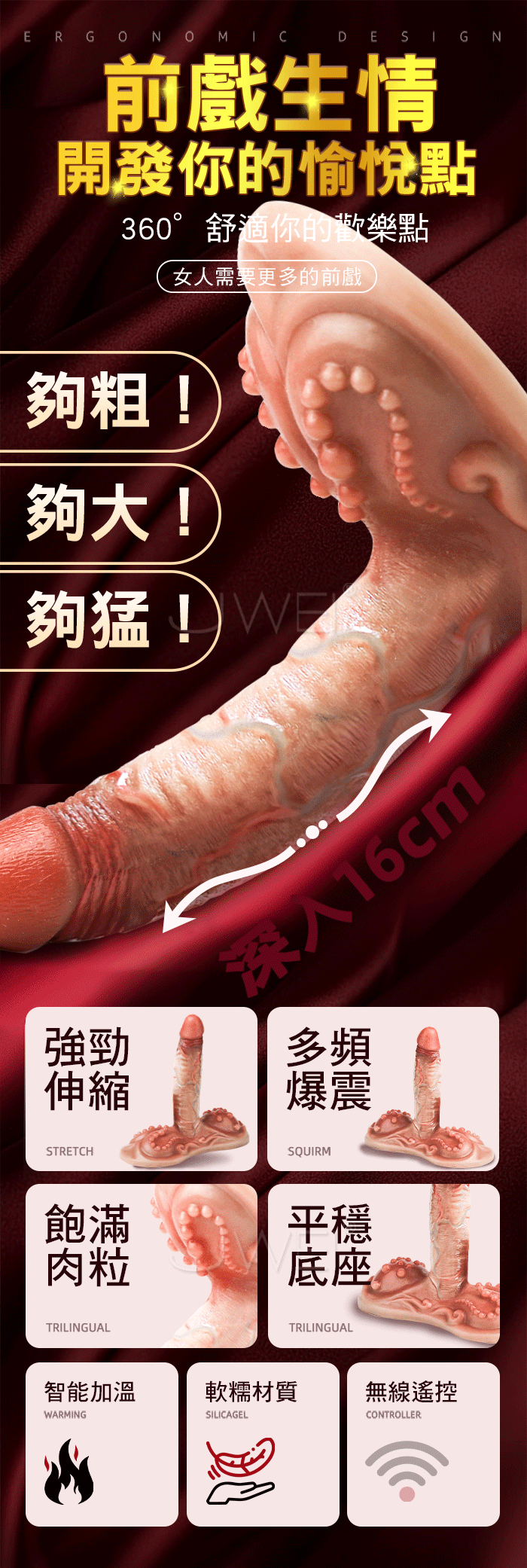 ■特點: 6頻震動、6頻伸縮、無線遙控、加溫