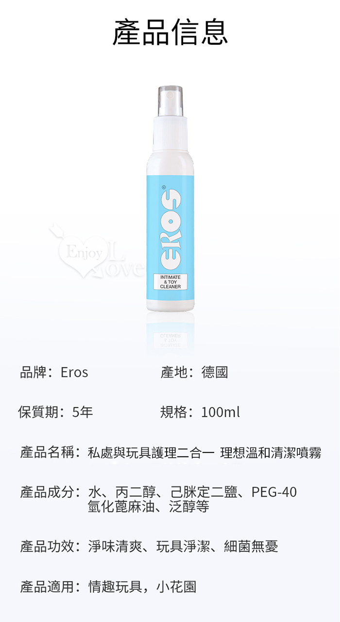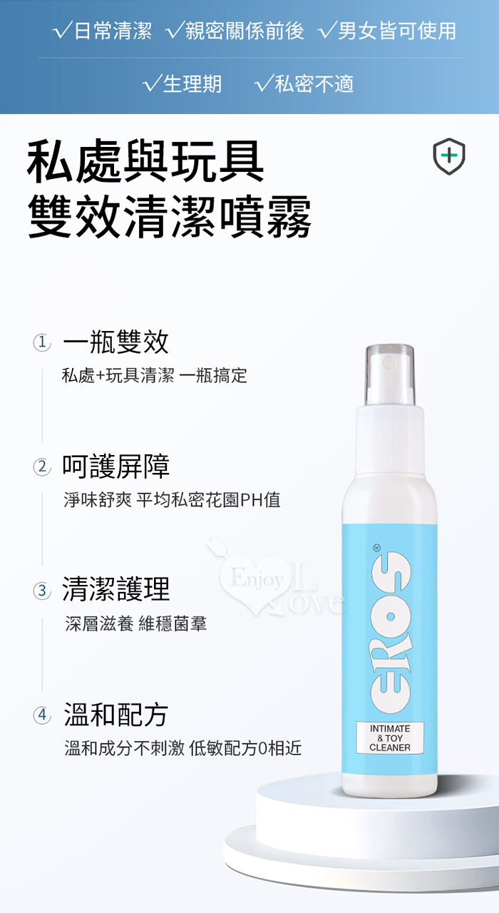德國Eros ‧ 一瓶雙效 私處與玩具護理二合一理想溫和清潔噴霧 100ml﹝大膽做 安心玩﹞