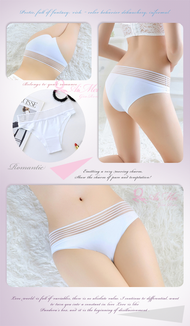 ※ 內褲款式:三角褲。 ※ 設計特色:條紋褲頭。 ※ 商品材質:90% POLYAMIDE+10% SPANDEX。 ※ 功 能:性感、美體。 ※ 顏 色:白色(如圖)。 ※ 商品尺碼:FREE SIZE (適合腰圍25~36吋)。 ※ 長度單位換算 : 1吋=2.54cm。 ※ 注意事項:基於保障消費者個人衛生,此貼身衣物恕不接受退換貨,謝謝您! (如為商品本身暇疵,接受七日內換貨,請勿試穿,謝謝您) ※ 網頁商品會因為您使用不同的品牌螢幕以及解析度不同,造成圖片顏色呈現會略有不同。