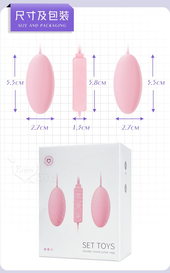 ROSELEX 勞樂斯 ‧ 雙圓跳蛋 18頻調控強震入體雙跳蛋﹝內外刺激+USB直插供電+雙邊可獨立控制﹞淺粉