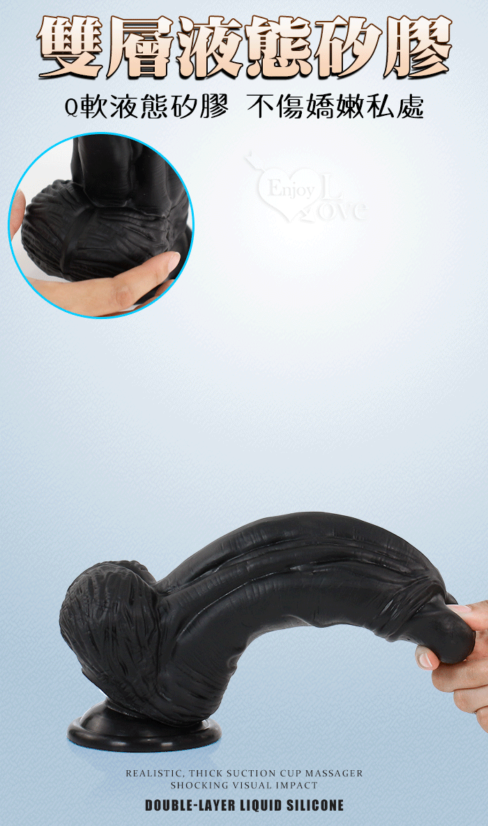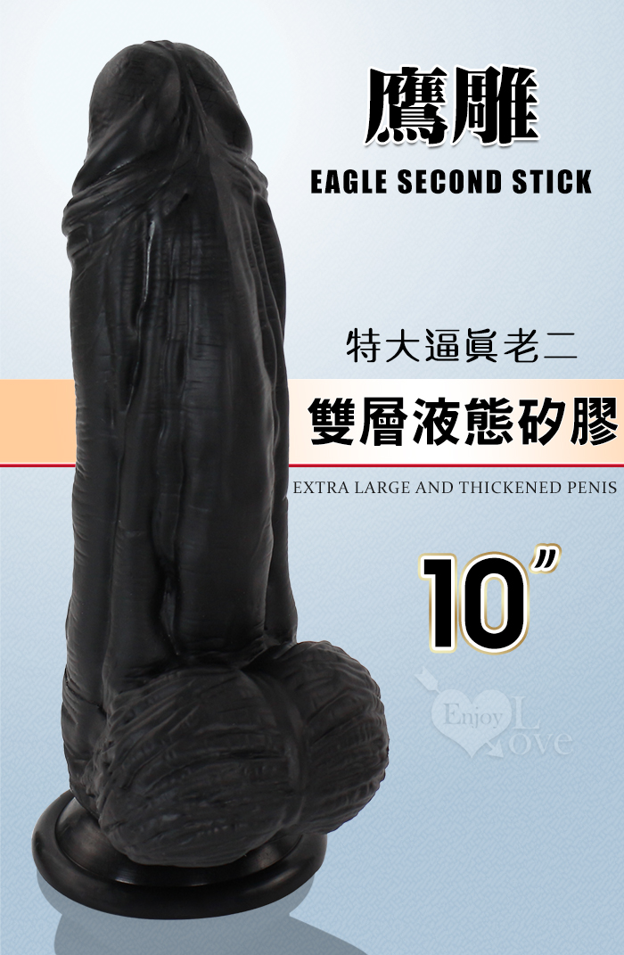 | Eagle 鷹雕~特大號雙層液態矽膠吸盤式逼真粗壯按摩棒-10吋/直徑6.5公分﹝黑色﹞