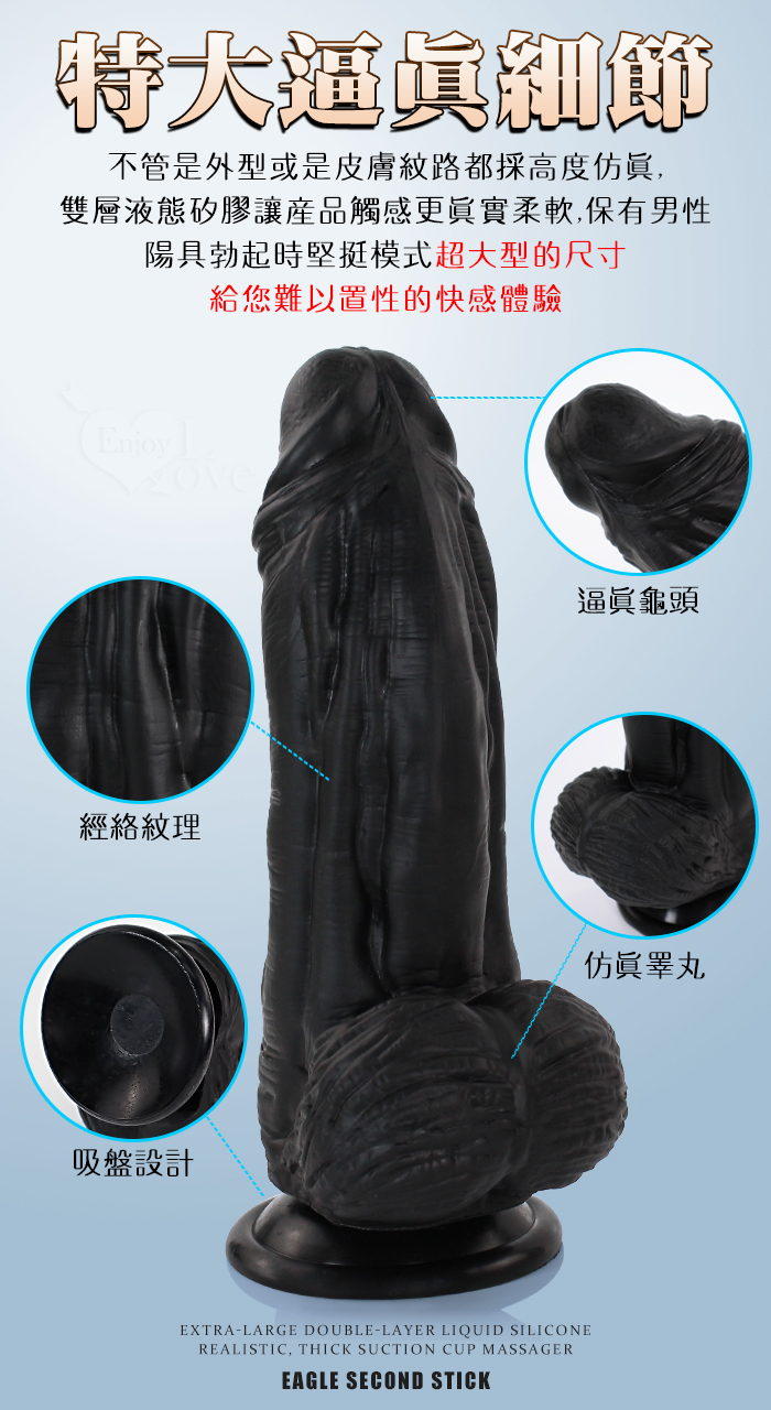 ►您現在的位置:首頁>Eagle 鷹雕~特大號雙層液態矽膠吸盤式逼真粗壯按摩棒-10吋/直徑6.5公分﹝黑色﹞