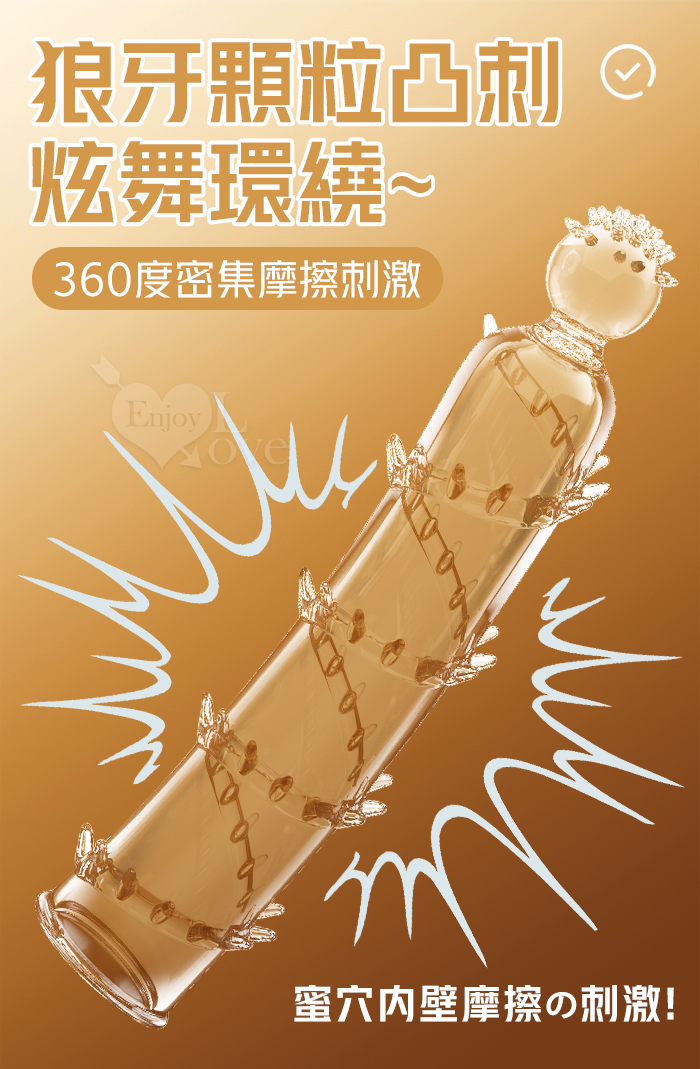 取悅 ‧ 觸鬚爆芽狼牙加強套-59個密集顆粒刺激G點~槍槍爆擊﹝透明色﹞
