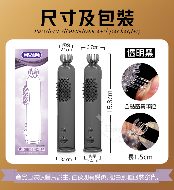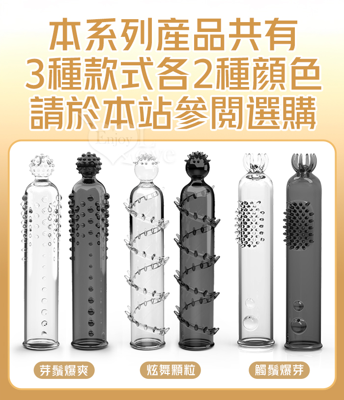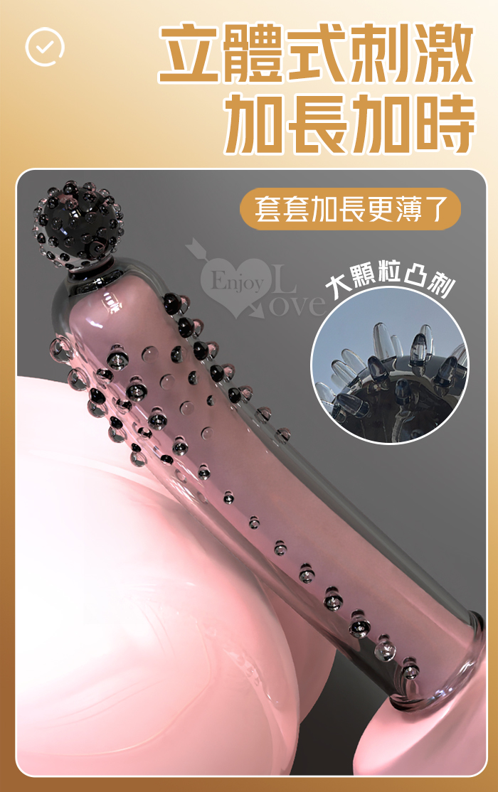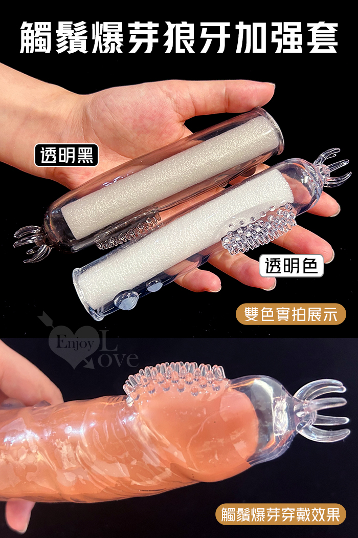 | 取悅 ‧ 觸鬚爆芽狼牙加強套-59個密集顆粒刺激G點~槍槍爆擊﹝透明黑﹞