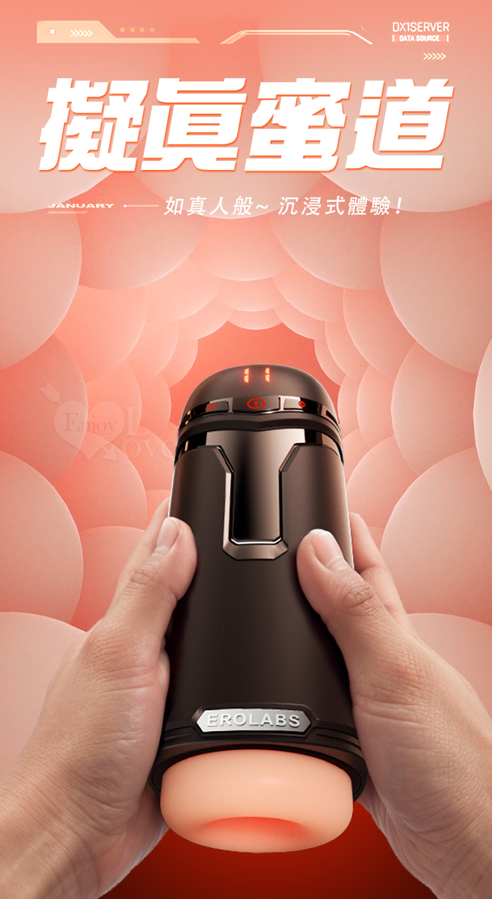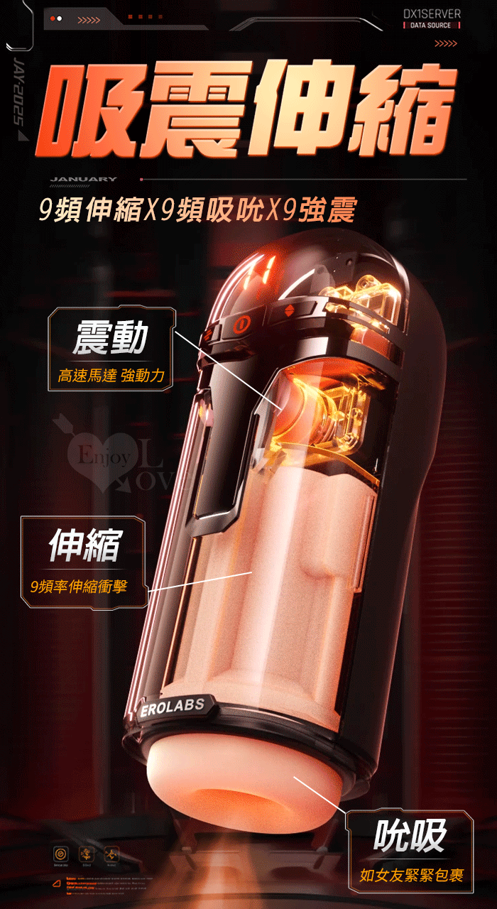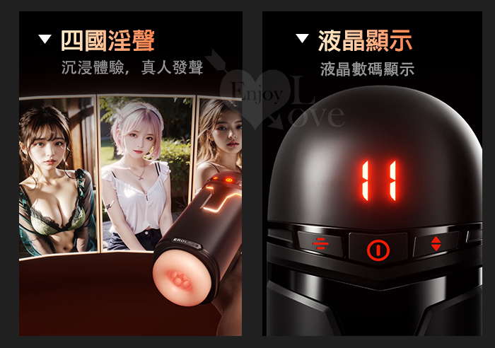 EROLABS 擼霸全配版 ‧ 智能伸縮/吸吮/震動/語音 緊實肉感自慰鍛練杯﹝液晶數碼9頻伸縮X9頻吸吮X9強震+4國淫聲+耳機﹞黑色