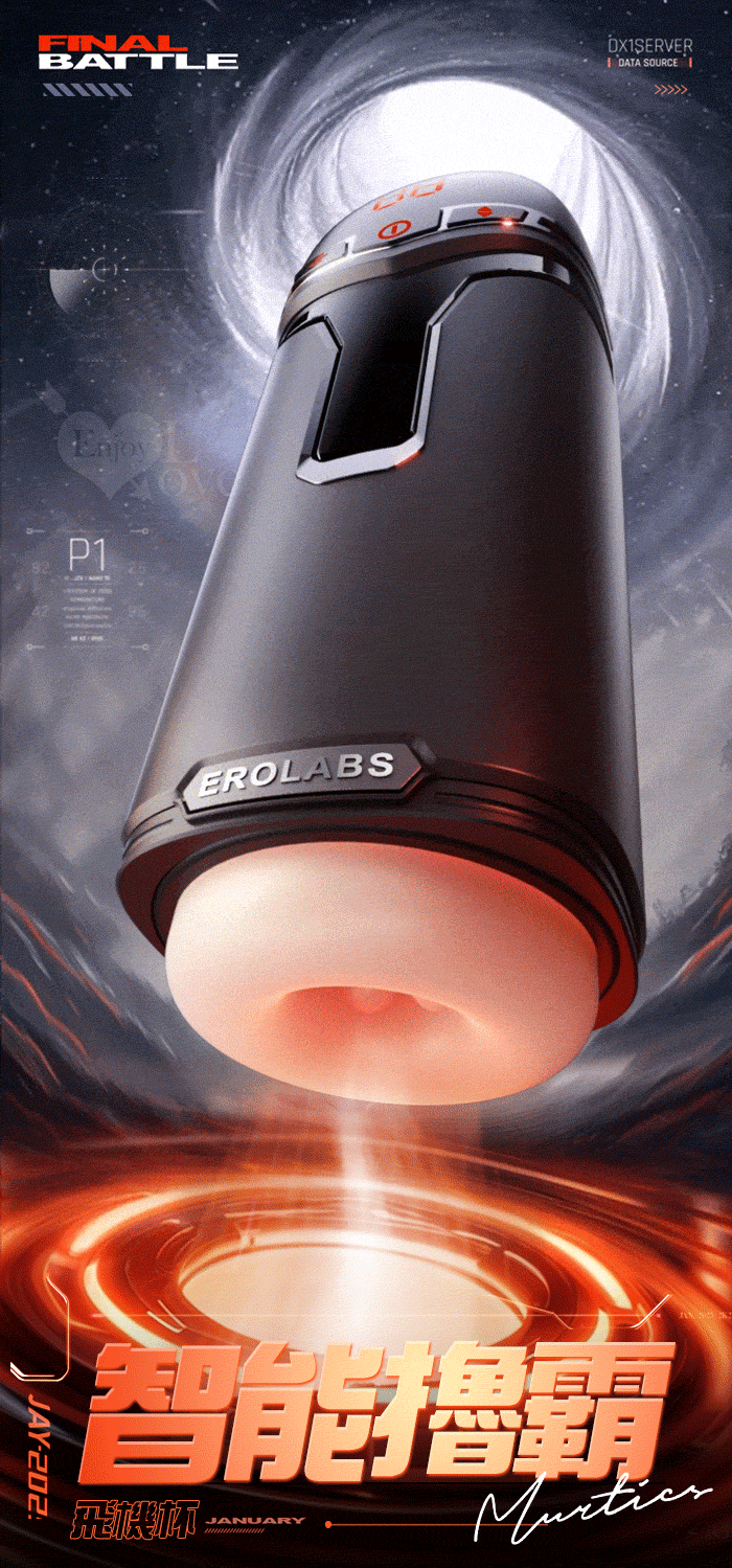 EROLABS 擼霸全配版 ‧ 智能伸縮/吸吮/震動/語音 緊實肉感自慰鍛練杯﹝液晶數碼9頻伸縮X9頻吸吮X9強震+4國淫聲+耳機﹞白色