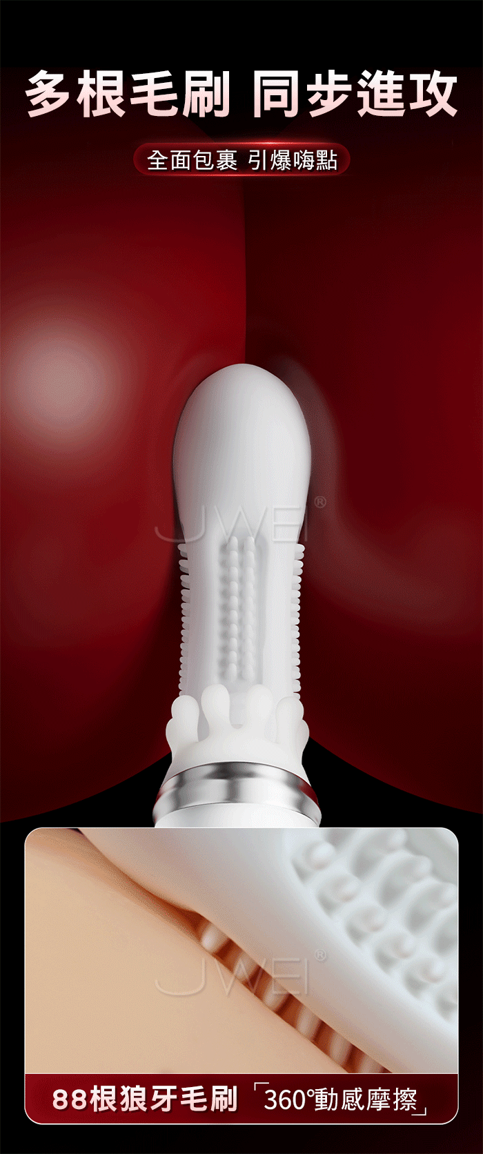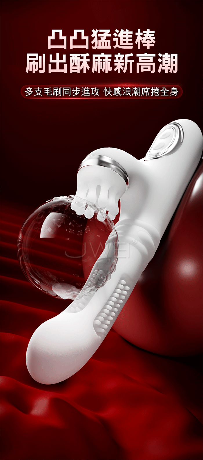 | 凸凸猛進.8x8x8頻伸縮拍打撩震+88根軟刺毛刷 G點爽潮加溫按摩棒