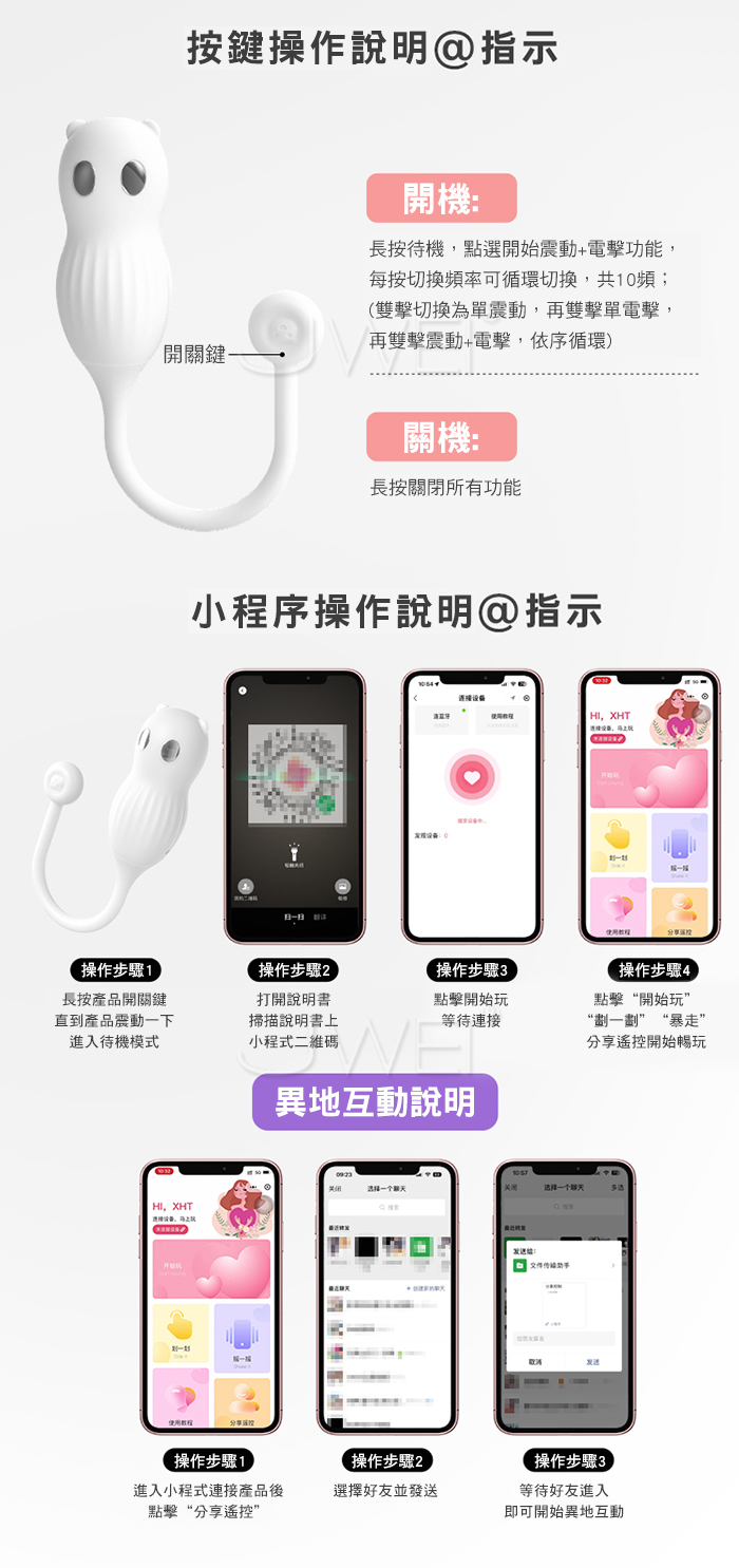 | 謎姬 MizzZee.小熊.10x10段穿透式酥震+微電流刺激 APP異地互動電擊跳蛋