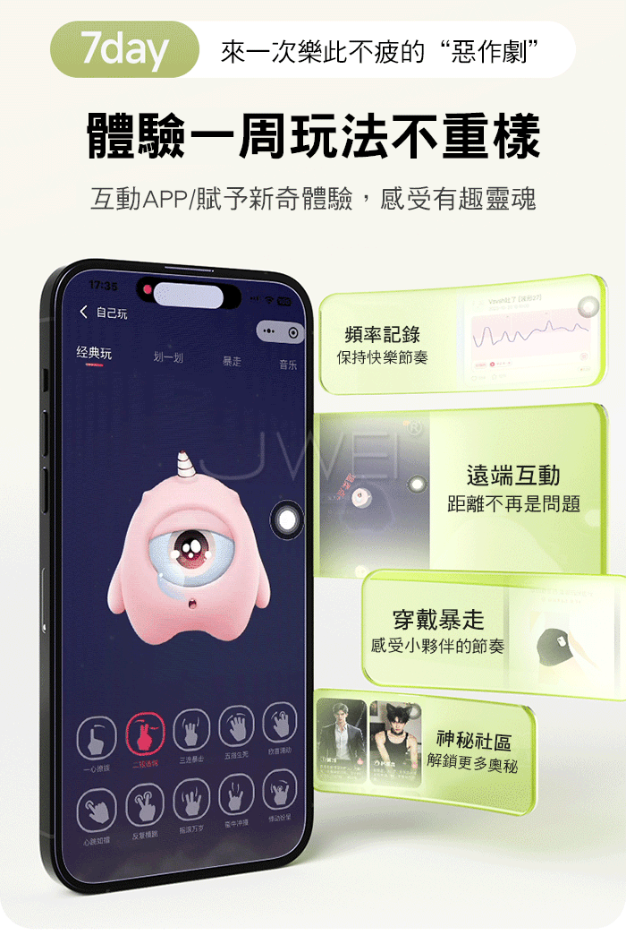 | 謎姬 MizzZee.雲吻月潮.10頻脈衝強震+10頻吮愛舌吻 APP遠控加溫二合一雙驅按摩器