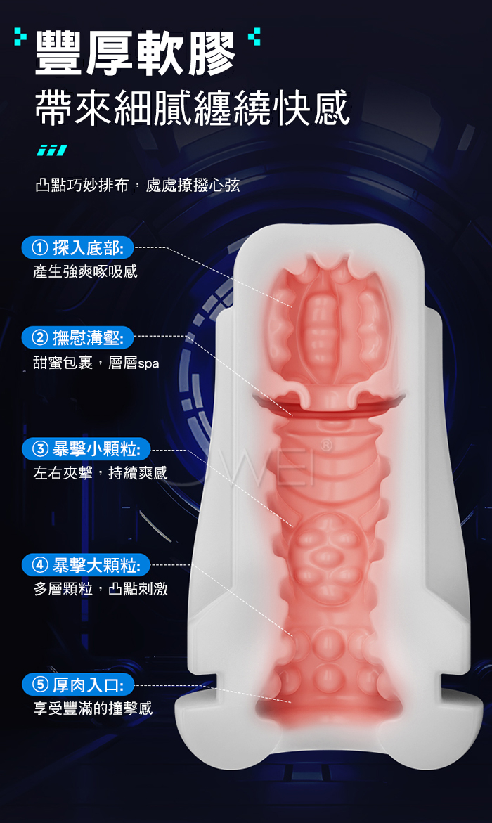 深穴吞吐榨汁,64種玩法牽引全身,疊加多種模式,邊震邊吸酥麻快感
