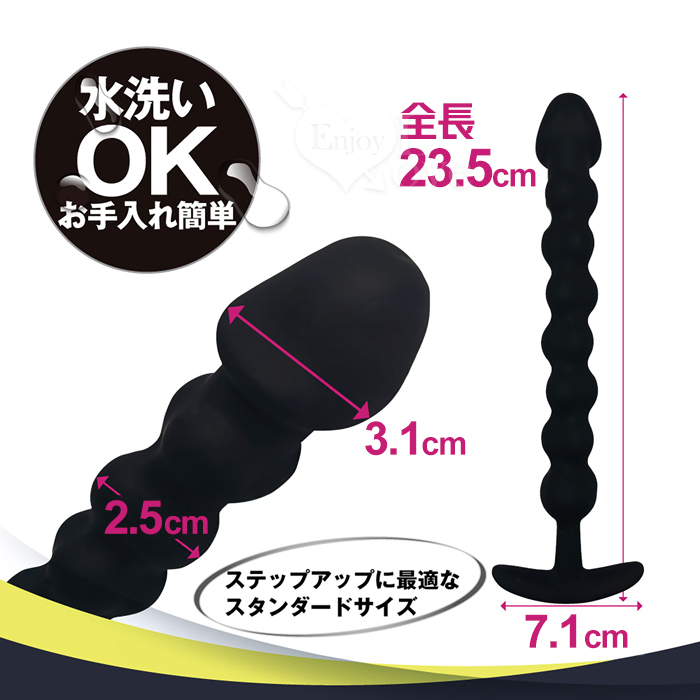 日文簡述: アナルの奥深くまで感じられるすたんだーど中級者向けアナルスティック。固まったアナルを徐々にほぐし、スムーズなプレイにつなげる為の準備運動に最適。ほぐした後は一気に引き抜いたりピストンすることで、リブ構造の連続快感を楽しめます。自在な可動域の挿入部分は、進路に合わせてクネクネ曲がるので身体を傷めません。高品質なソフトシリコン採用で、柔らかい肌触りとしっかりした存在感を両立。水洗い可能なので使用後も清潔に保てます。