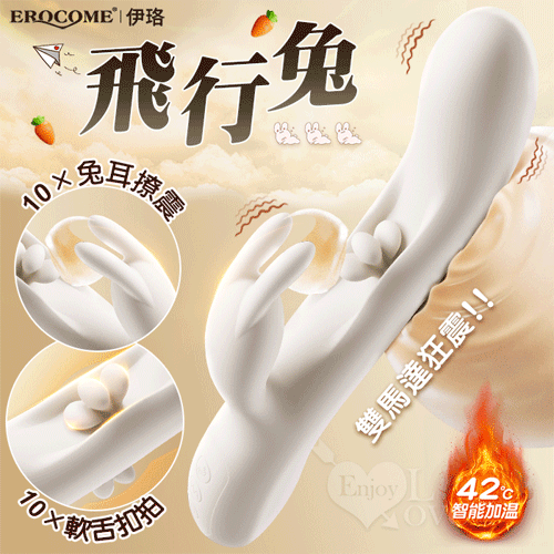 EROCOME伊珞.Flying Bunny 飛行兔 10x10頻飛輪軟舌兔耳震動拍打雙震加溫3合1按摩棒