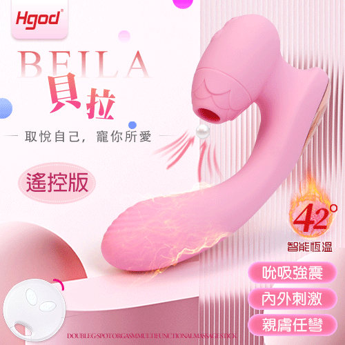 Hgod ‧ Beila 貝拉 無線遙控 7吮吸X7震顫 雙重G點高潮多功能按摩棒﹝兩種操控+自動加溫+親膚任彎+防水靜音+USB充電﹞蜜粉