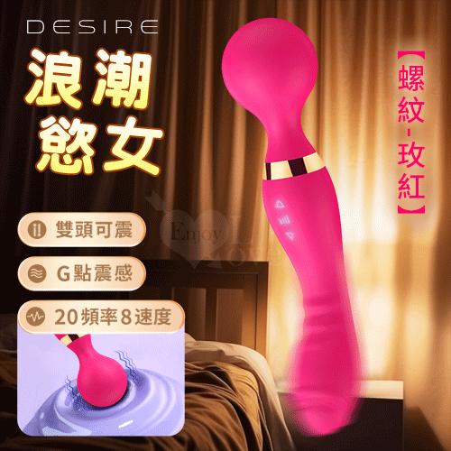 Desire 浪潮慾女 ‧ 螺紋款 8x20頻強悍震感G點AV按摩棒﹝雙頭雙震+360度彎曲+舒適硅膠﹞玫紅