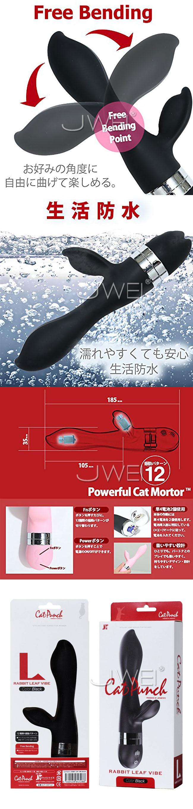 自分好みの角度に自由に曲げることが出来る『フリーベンディング機能』を搭載したフレキシブルなバイブレーターです。強力な振動と12種類のパターン切り替えでエレガントなナイトライフをご堪能ください。ハイクオリティー&ロープライスをモットーに掲げた新ブランド『Cat Punch』が遂に始動! キャットパンチ L ラビットリーフ バイブ / ピンク