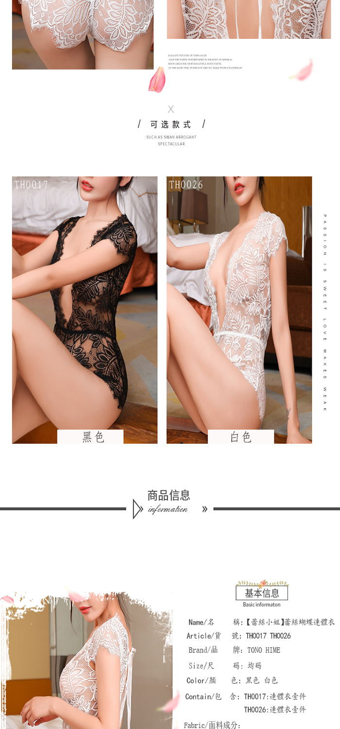 TONO HIME【蕾絲小姐】蕾絲蝴蝶連體衣(黑)